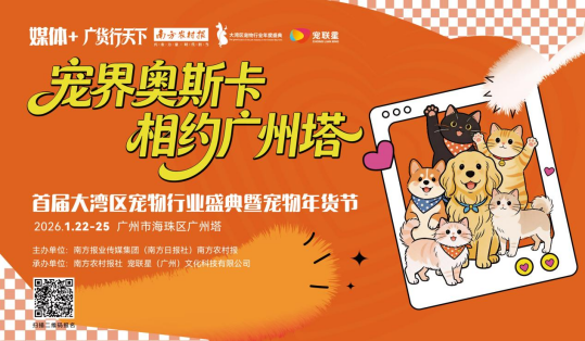 想要把握宠物食品赛道最新趋势?这场盛典给您答案!讲究1月22日至25日,广货“媒体+”广货行天下·首届大湾区宠物行业年度盛典暨宠物年货节将在广州塔盛大举办,行天下带行业新集结全产业链力量,共绘宠物食品行业发展新蓝图。